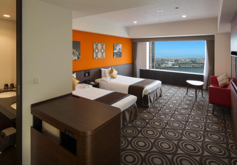 바로 앞에 유니버셜스튜디오가 있어서 usj가 주목적이라면 아주 좋다. 프런트에서 따로 할인은 없지만 입장권을 판매하니 매표소에서 힘들게 줄설 필요 없어 좋다. 식사도 기본은 하고, 근처에 공항리무진도 있어서 아이동반한는 가족에게는 추천. 시내관광, 쇼핑, 주변도시이동을 생각한다면 난바나 오사카 시내숙소 추천함.