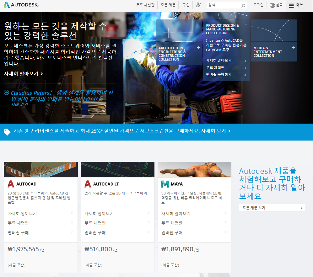 Autodesk 소프트웨어는 상상력을 현실로 창조하는 사람들을 위해 만들어졌습니다. 사람들의 이목을 끄는 고성능 자동차와 하늘 높이 우뚝 솟은 고층 건물, 혁신적인 디자인과 기능을 자랑하는 스마트폰, 그리고 명작 영화까지, 이 중 하나라도 경험해 봤다면 수백만 명의 Autodesk 고객들이 Autodesk 소프트웨어로 어떤 일을 하고 있는지 이미 경험해보신 것입니다.